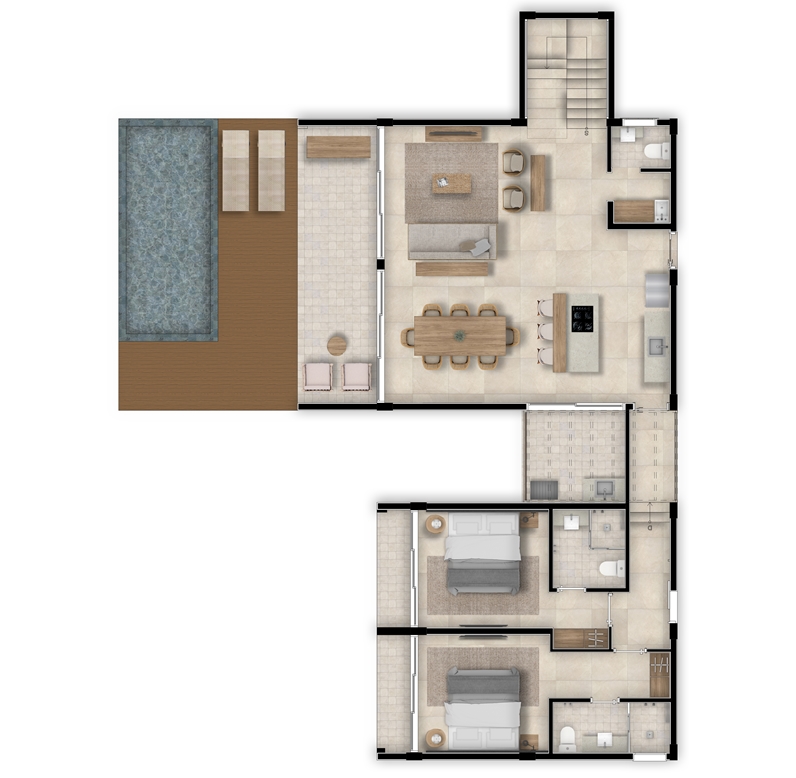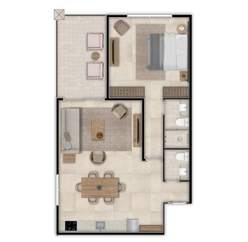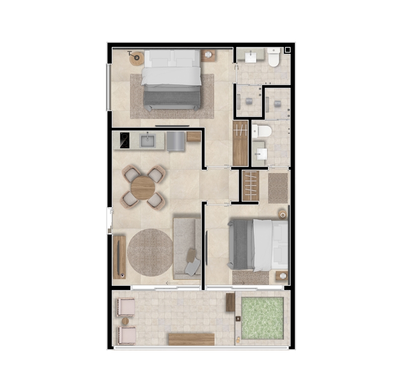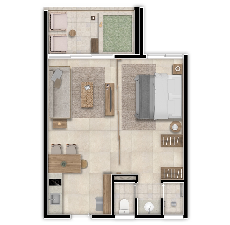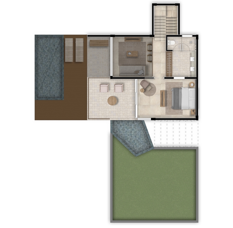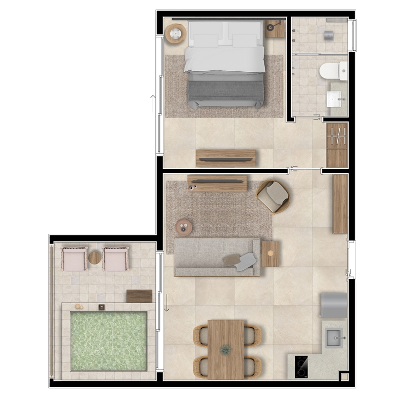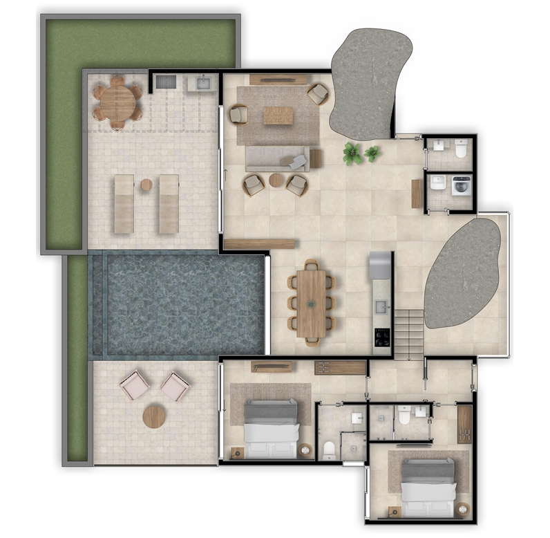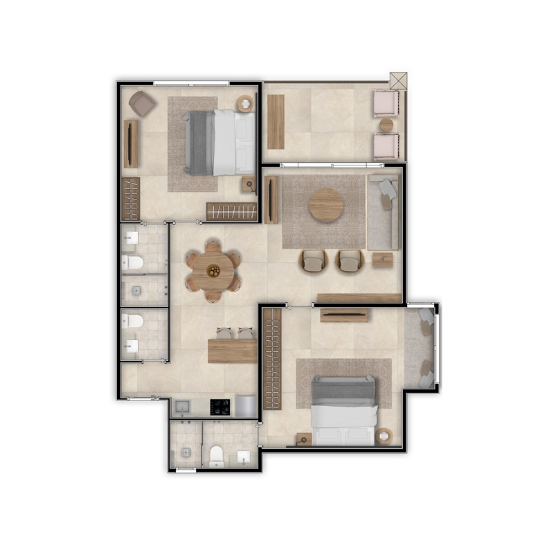 Estão são ilustrações artísticas. Os móveis, objetos e revestimento piso, parede e forro são sugestões decorativas.